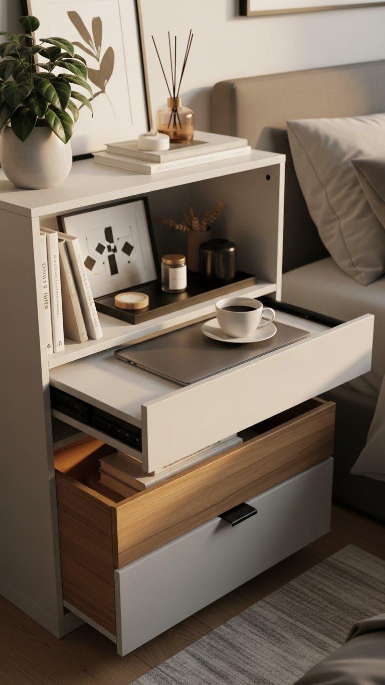 When space is tight, a multipurpose nightstand becomes more than a surface — it’s a compact command center that keeps essentials tidy and accessible.