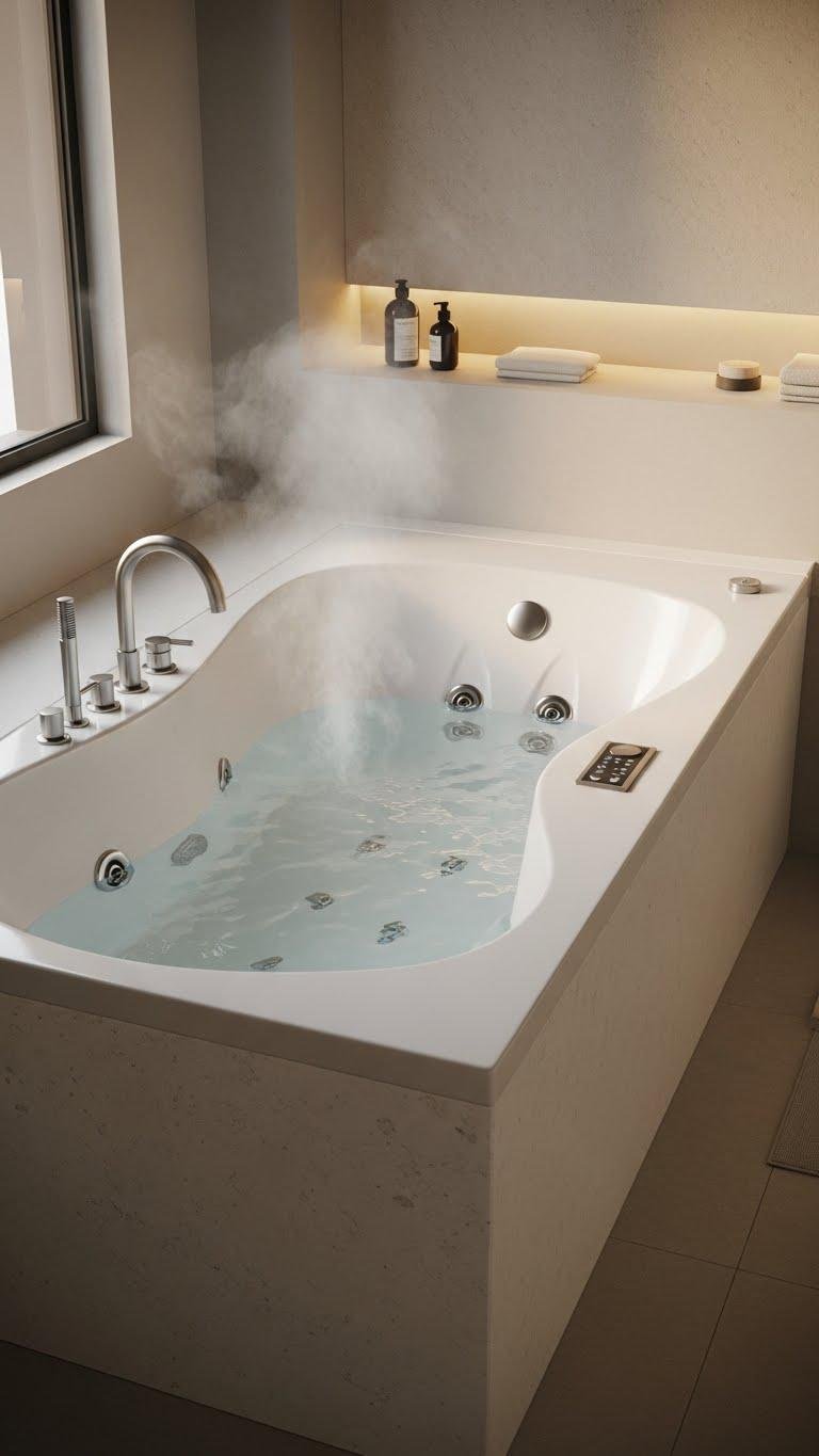 Sink into targeted comfort with a hydrotherapy jet tub that blends sculpted ergonomics and adjustable jets to soothe muscles and lift your bathroom from functional to spa-like. You’ll choose jet ergonomics that cradle your body, control intensity for deep relief, and select finishes that echo minimal freedom. Prioritize hydrotherapy maintenance routines and accessible controls so your retreat stays effortless and restorative.