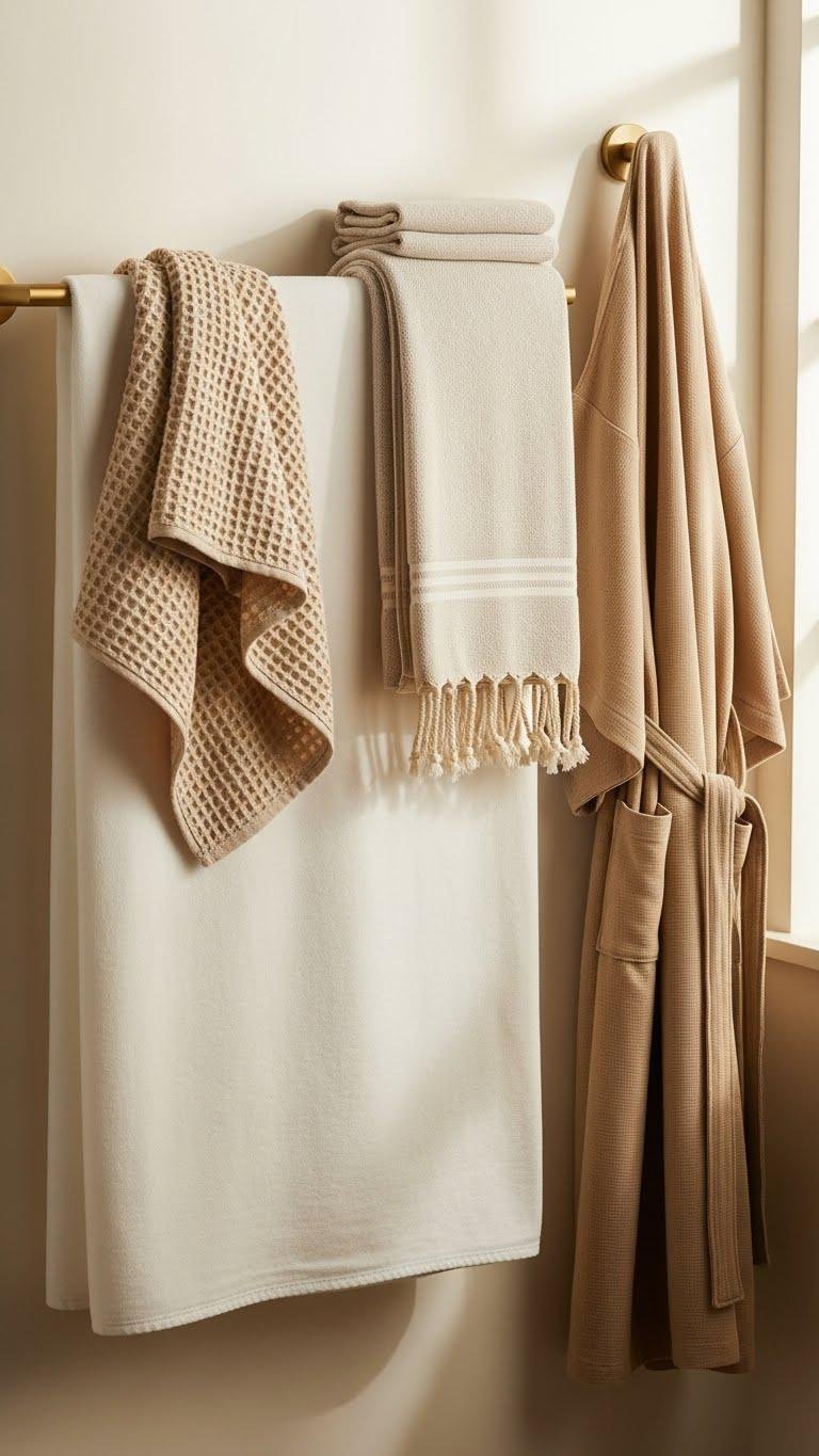 Often you’ll reach for a towel that feels like a small luxury — plush, absorbent, and inviting — and that tactile comfort instantly lifts the bathroom’s look. Choose Egyptian cotton bath sheets for softness, mix waffle weave hand towels for texture, add bamboo viscose robes for drape, and tuck a Turkish peshtemal for light layering. Rotate colors to keep the space calm and free.