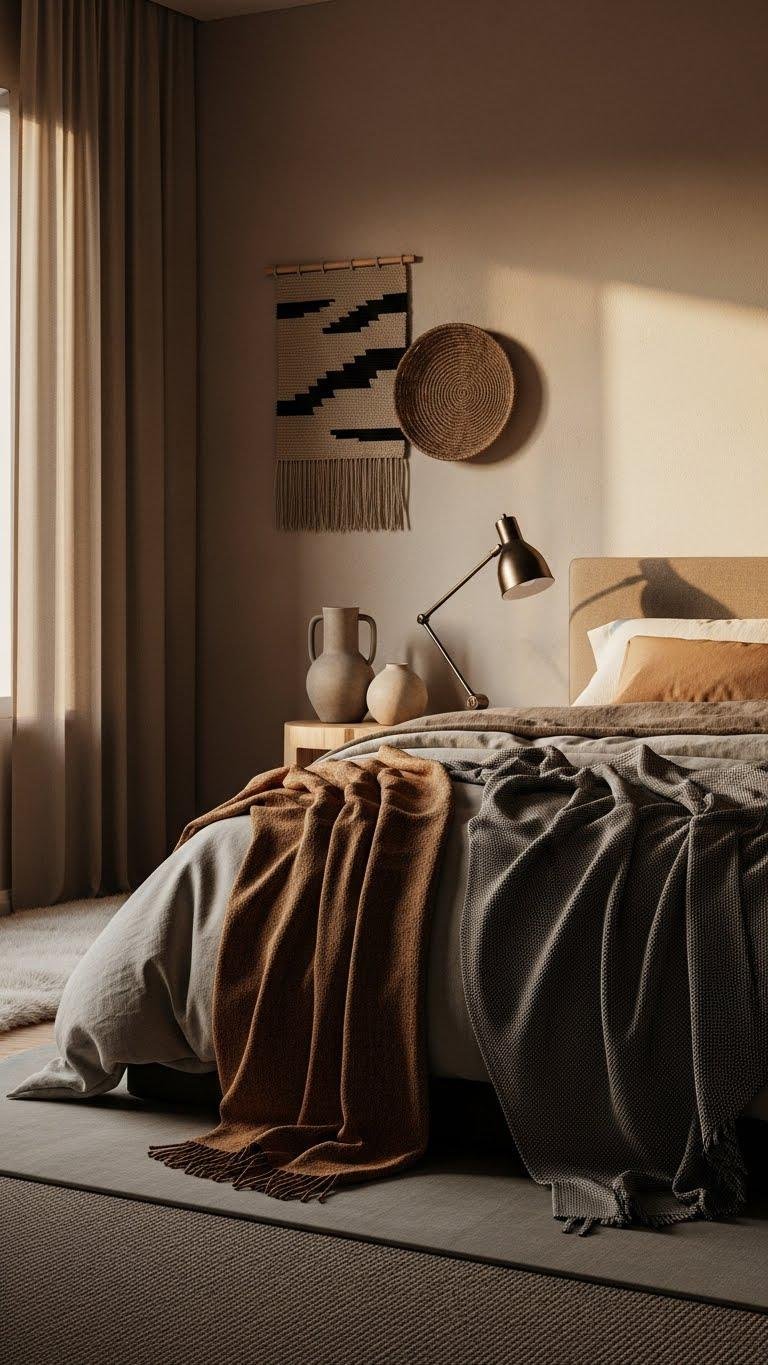 Add a subtle sheepskin at the bedside, drape woven wallhangings to break flat walls, and choose matte ceramics and brushed metals. You’ll craft a liberated, quiet sanctuary that feels intentionally tactile.