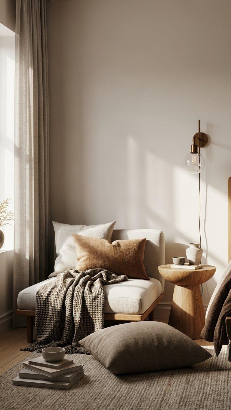 You’ll layer tonal textiles—patterned velvet throws, matte linen, wool—and curate a personalized gallery with restrained frames.