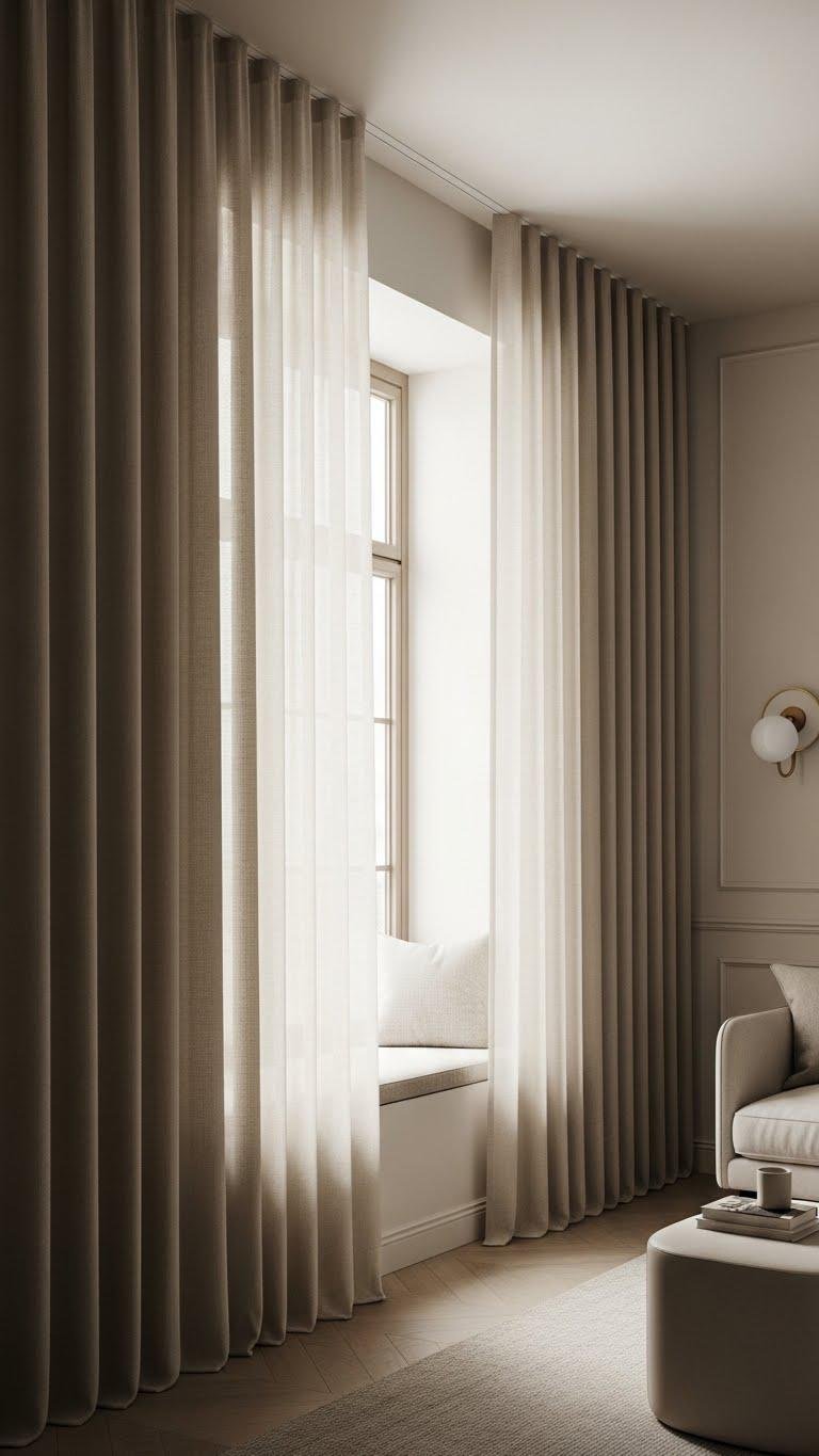 When you hang floor-to-ceiling curtains, they instantly give the room a feeling of height and shelter, drawing the eye upward while softening hard edges.