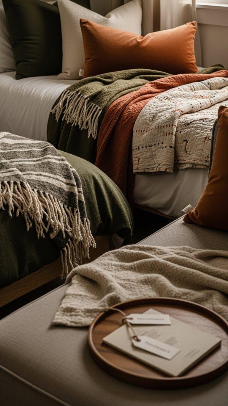 When you layer natural fibers and linens, the room breathes—cotton, linen, wool, and jute each introduce distinct textures and natural irregularities that make a bed feel curated rather than contrived.