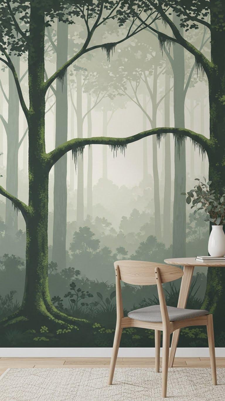 Tranquil Forest Scene Mural on Accent Wall