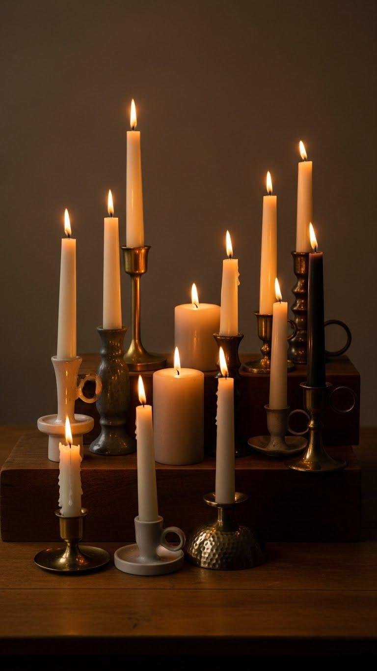 When you stagger taper candles across multiple levels, you create a layered focal point that feels both intentional and effortless; varying heights and holders let light cascade instead of compete.