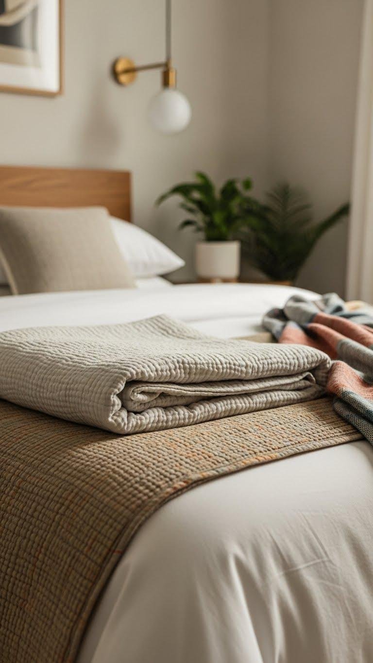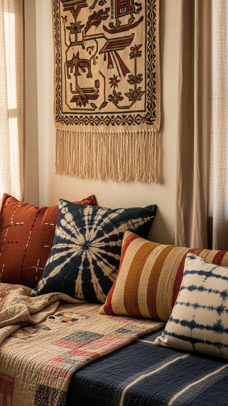 Weaving handmade or vintage textiles into your bedroom instantly adds warmth, history, and tactile contrast that mass-produced fabrics can’t match.