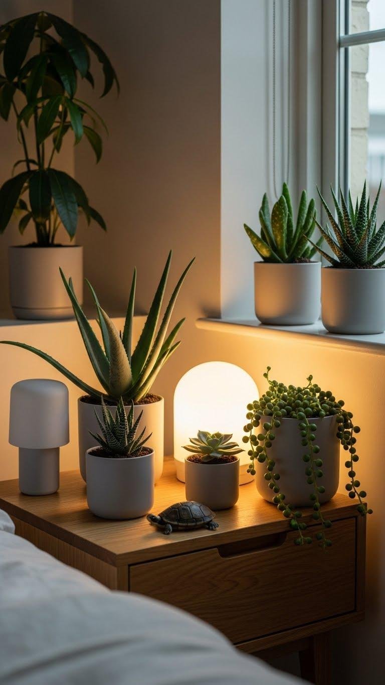 After you’ve set calming light scenes, bring living greenery into your bedroom to deepen that sense of calm and clean the air with almost no fuss.