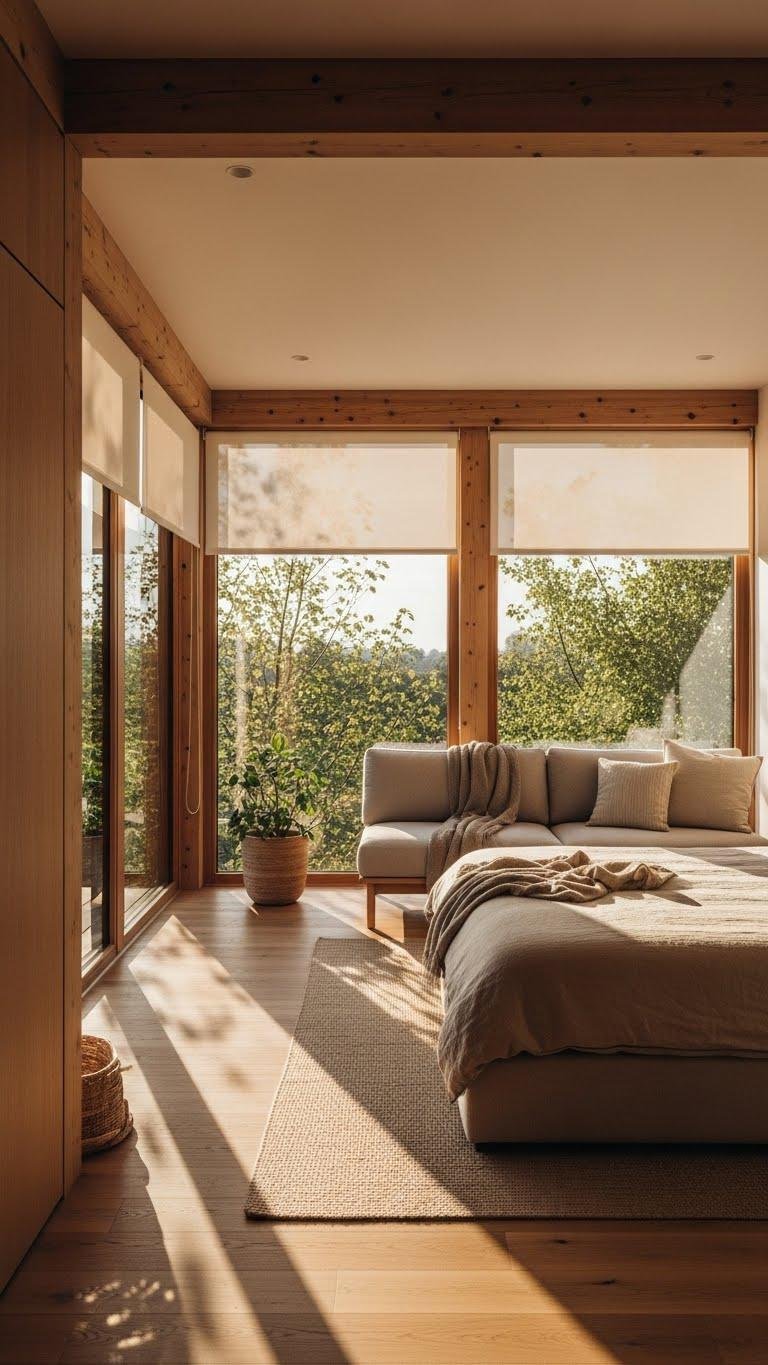 Natural materials set a warm stage, but daylight and views are what make that warmth feel alive—so position your bed and seating to face windows and let the outdoors become part of the room’s composition.