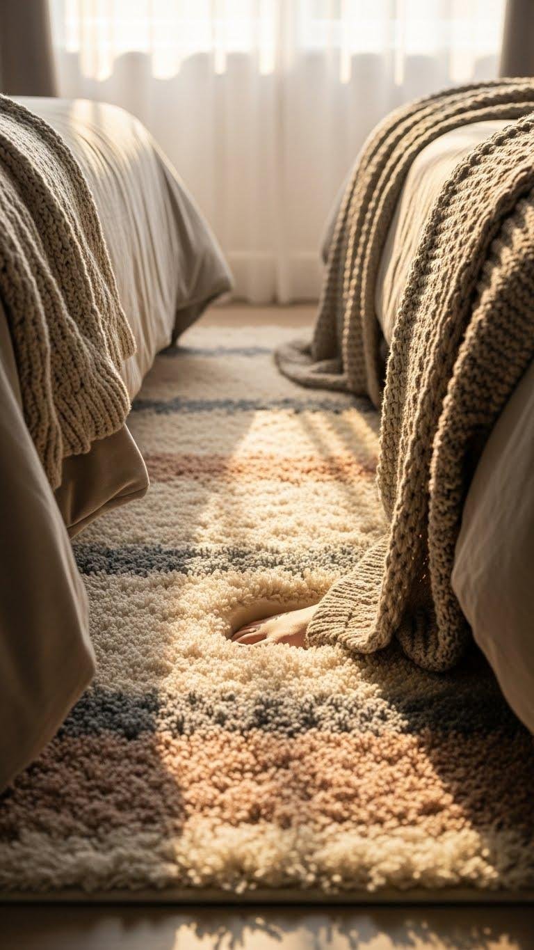 Plush High‑Pile Area Rug Beside the Bed