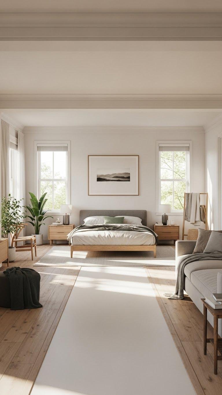 Smart furniture layout and simple circulation planning let you move freely, create calm focal points, and keep the space airy and intentionally uncluttered.