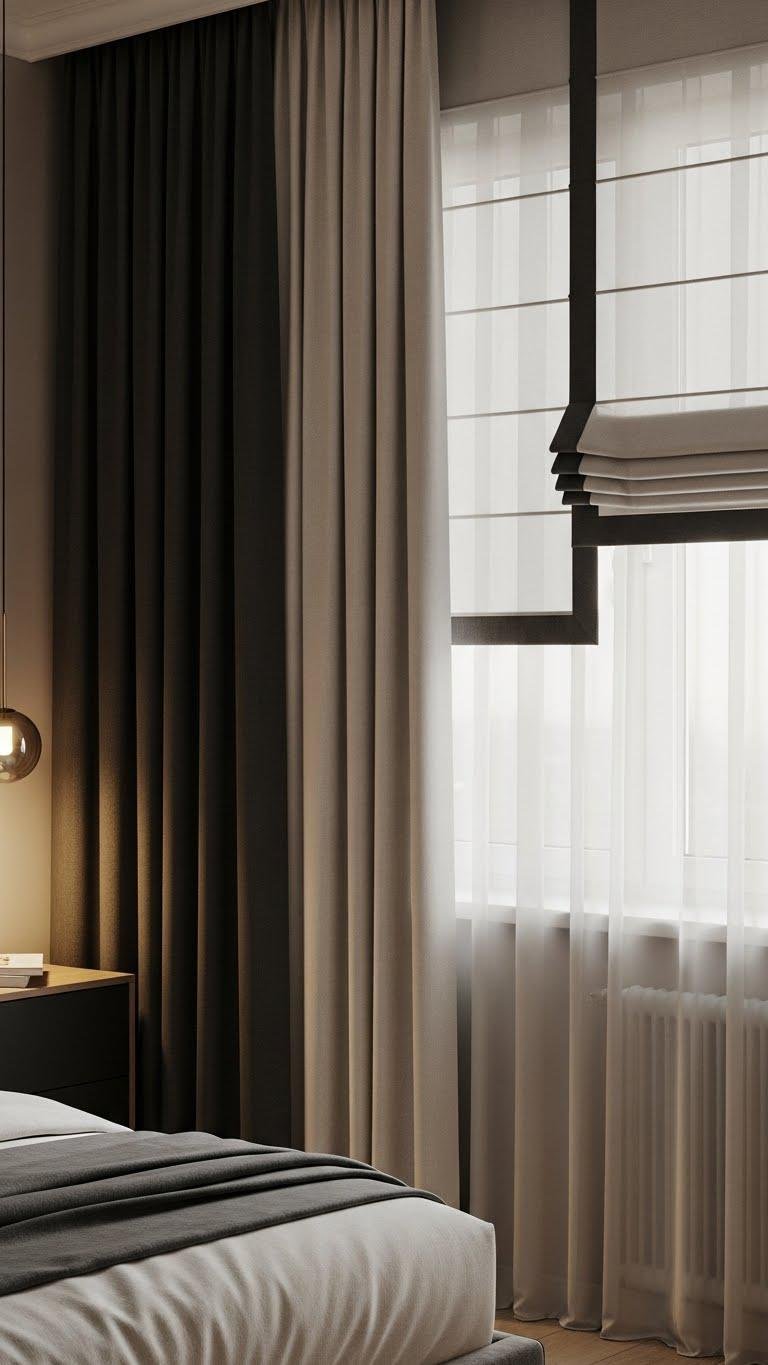 Pull closed a set of heavy drapery to instantly transform light and sound in your bedroom: pair dense, insulated panels with sheer liners or roman shades so you can dial privacy, daylight, and thermal performance precisely.
