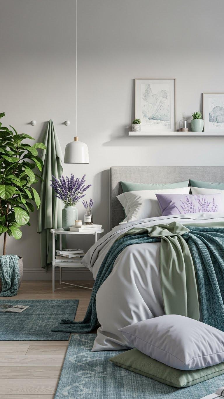 Soft Blues, Sage Greens, and Lavender Accents