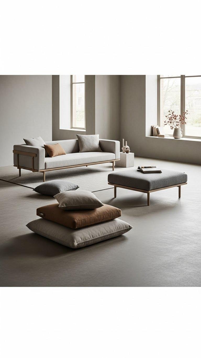 Lean into low-profile seating to make rooms feel open, grounded, and effortlessly modern—choose pieces with slim arms, shorter legs, and lower seat heights that keep sightlines clear and scale proportionate to the space. You can mix low profile ottomans, sleek sofas, and layered floor cushions to create flexible seating.