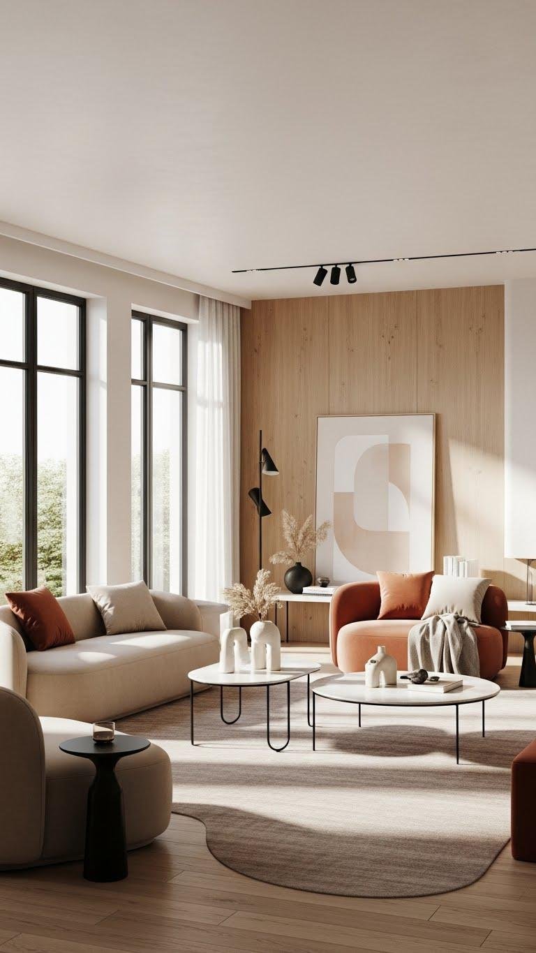 You’ll want your home to feel like a calm, lived-in refuge, so start with warm earth tones, tactile textiles, and layered lighting. Think low, oversized sofas, rounded shapes, oak finishes and terracotta accents that age well. Mix bouclé chairs, stacked rugs and matte ceramics for texture, then soften light with dimmers and table lamps. Keep going to see how small changes create a lasting, inviting atmosphere.