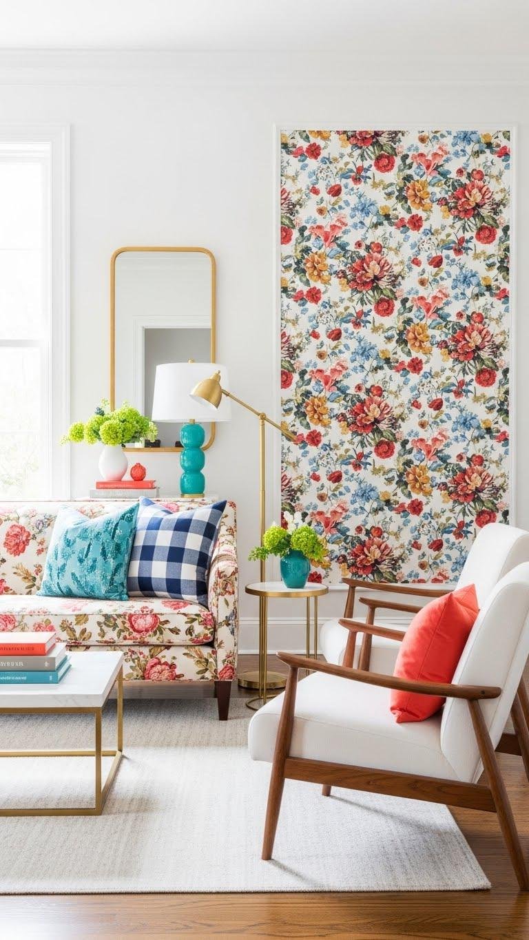 You’ll layer heritage florals beside tailored gingham, pair gilt accents with streamlined furniture, and choose one statement pattern to anchor the room so each piece breathes and you feel effortlessly free.