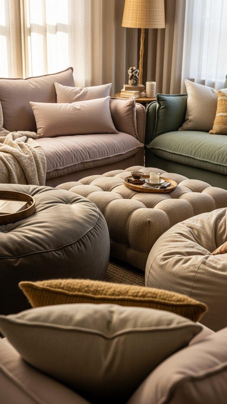Sink into overstuffed furniture and you’ll immediately change a room’s attitude from tidy to indulgent — the plush silhouettes invite lingering, reading, and slow afternoons. You’ll choose oversized ottomans and deep sofas that encourage sprawl, or beanbag loungers for playful ease. Mix tactile fabrics, soft colors, and generous proportions to create a liberated haven that prioritizes comfort without sacrificing style.