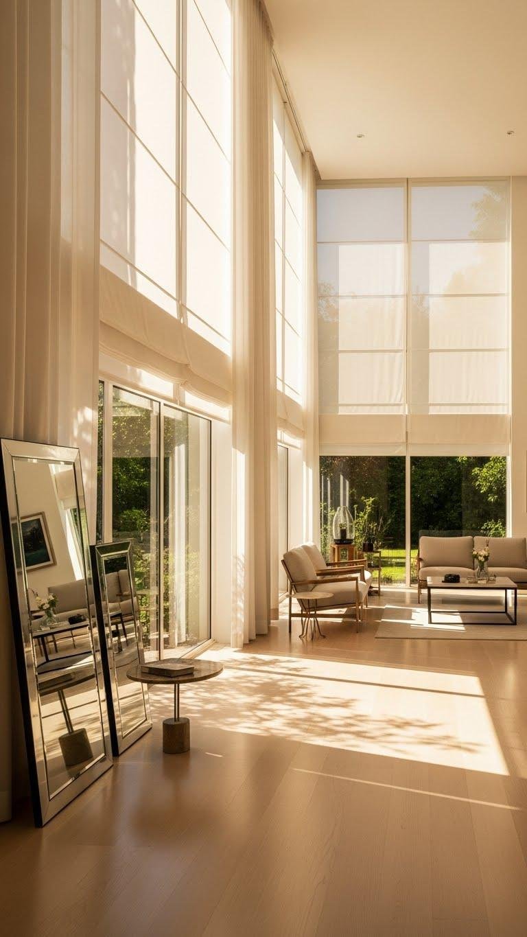 By angling your windows, choosing sheer layers, and positioning reflective surfaces, you’ll blur the line between inside and out so light becomes a design element rather than just a fixture.