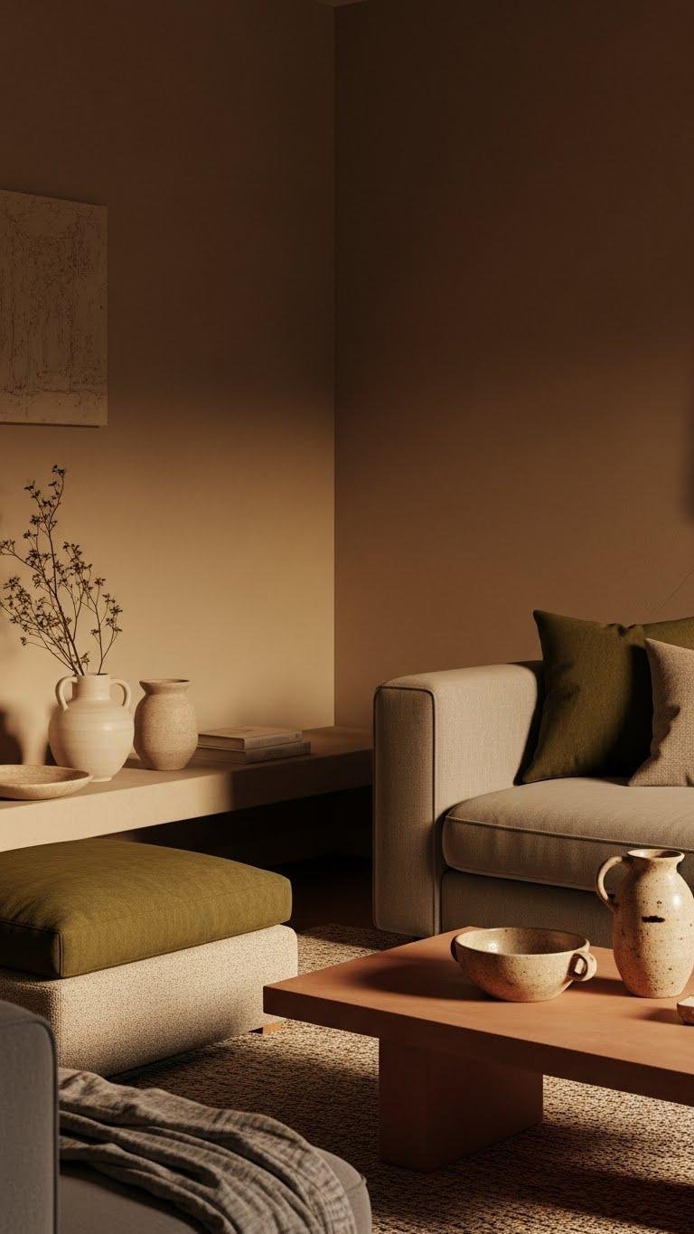Warm lighting makes a room feel intimate; pairing it with an earthy color palette makes that intimacy feel steady and grounded. You’ll choose earthy neutrals—soft taupes, warm greiges, mossy greens—that free the mind and anchor the senses.