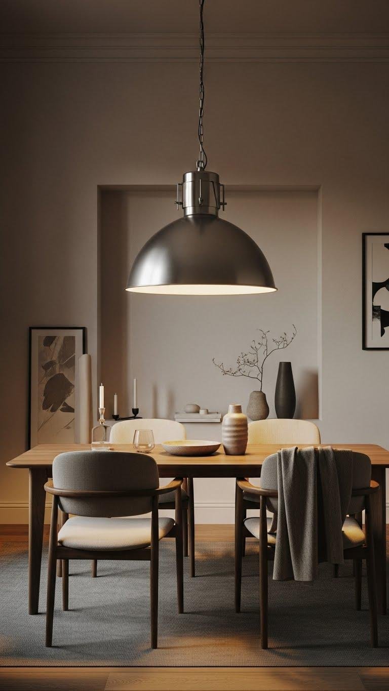 Install dimmer switches to give your dining room instant mood control and greater versatility. You’ll gain precise ambience control, letting you shift from bright, lively meals to soft, intimate lighting.
