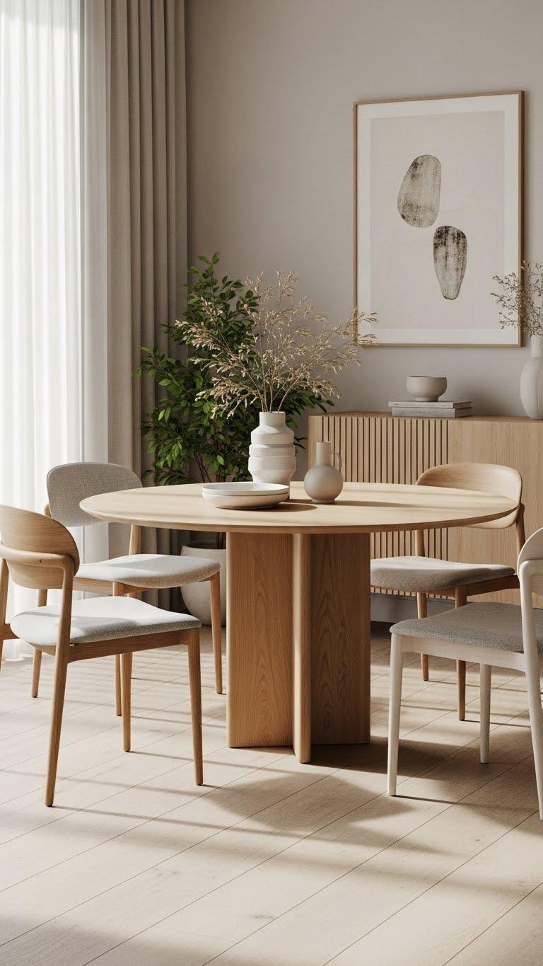 When space or conversation is a priority, pair a round table with a pedestal base to maximize comfort and flow; its single central support frees up legroom and creates an uncluttered silhouette that reads modern yet timeless.
