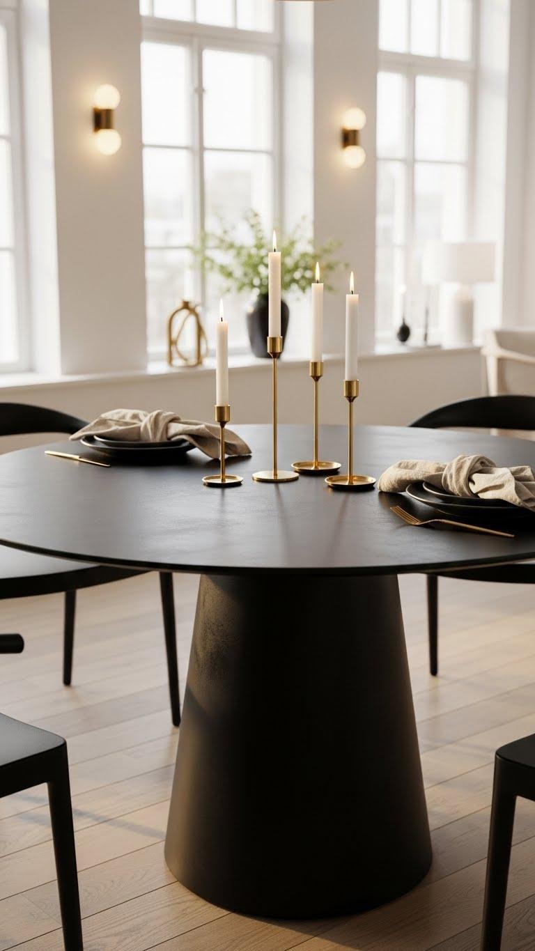 You’ll create striking contrast accents with brass or linen, and effortless confidence — a liberated, polished dining statement that’s both cozy and modern.