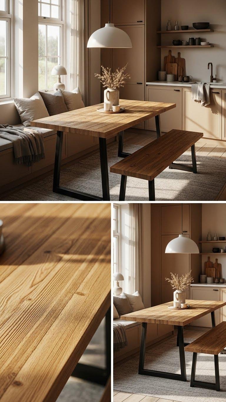 Warm the Space With Honey‑Colored Wood Tables and Benches