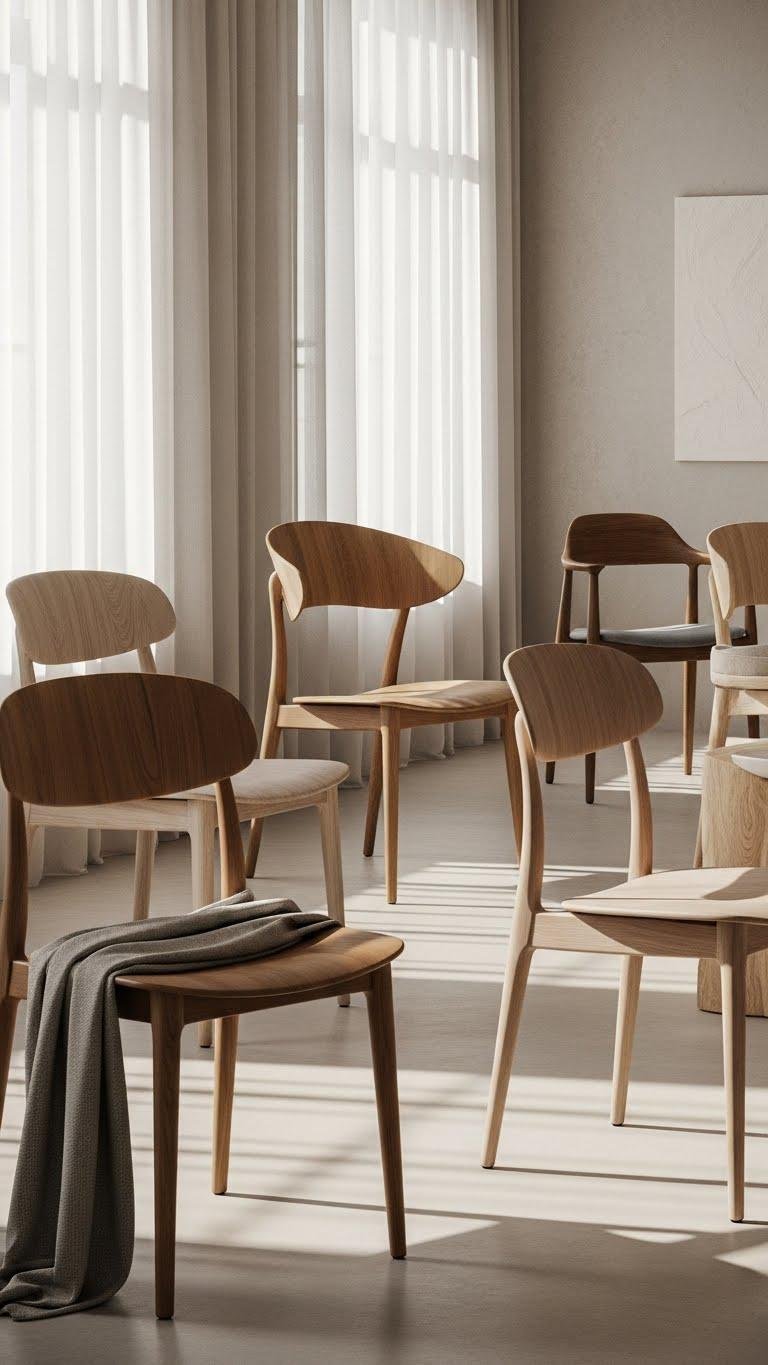 Mix Sculptural Wood Chairs in Neutral Palettes