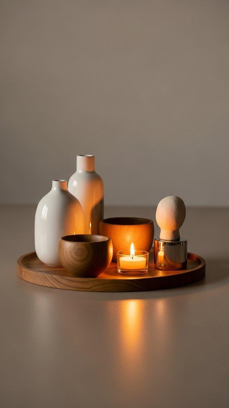Think of a curated tray as a miniature tableau that organizes objects into a clear focal story; you’ll group vessels, candles, and a single sculptural accent on a low tray to create rhythm and balance. You’ll play with color coordination and material contrast—glossy ceramic beside matte wood, soft candlelight near metallic shine—so the arrangement feels intentional, relaxed, and free-form without clutter.