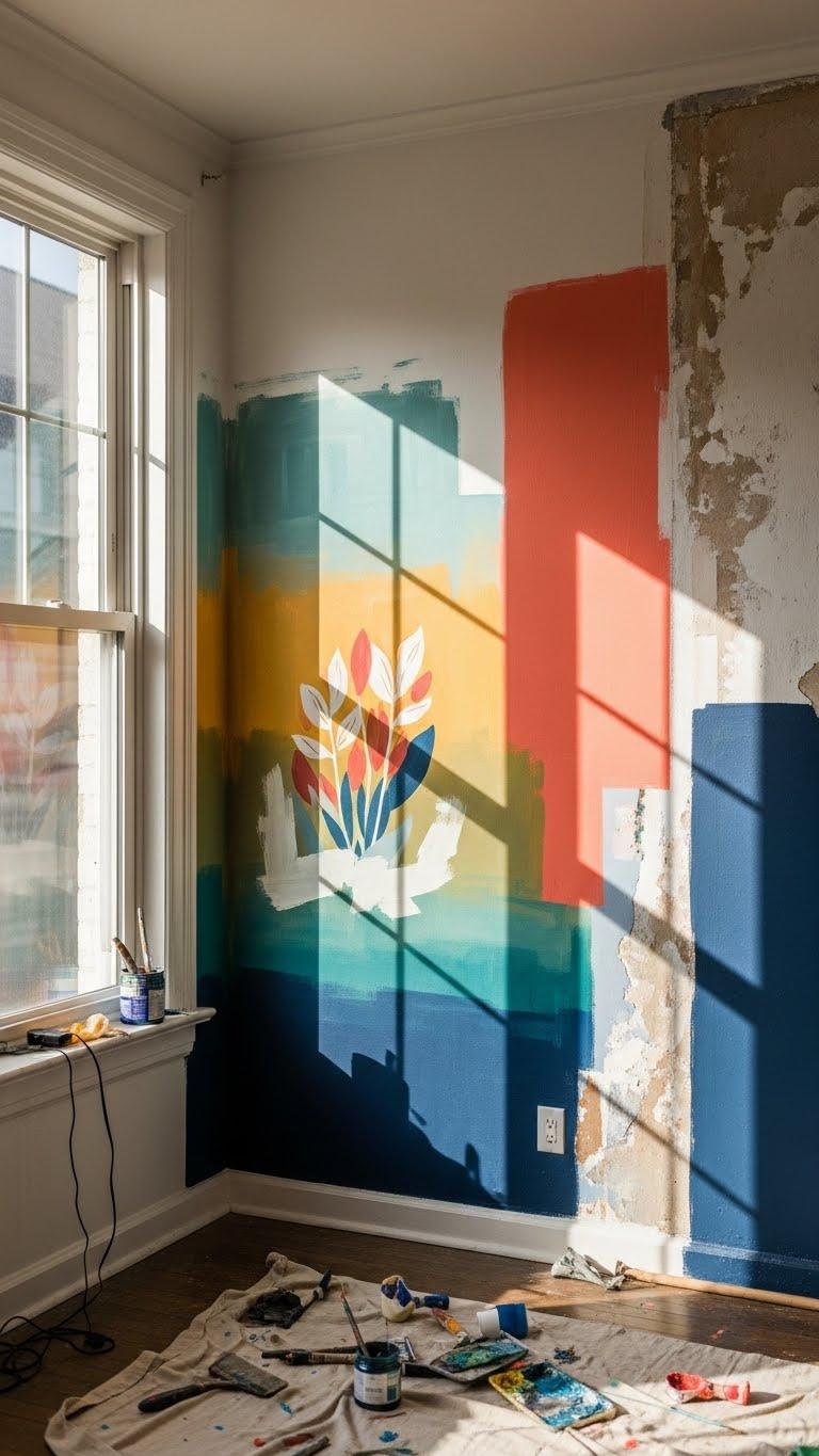 If you want your walls to do more than sit quietly in the background, embrace paint techniques that mix bold gestures with unexpected subtlety — think layered washes, color-blocked murals, and distressed glazing that let surfaces show their history. You’ll experiment freely with hand painted murals, ombre washes, and textured patinas, creating rooms that feel personal, adventurous, and effortlessly tuned to your mood.