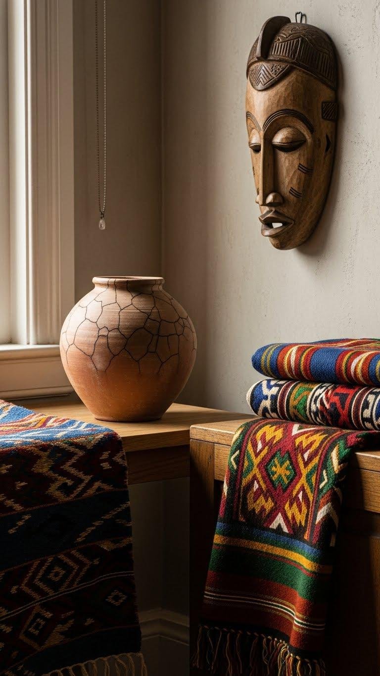 A well-chosen textile, carved mask, or hand-thrown pot can instantly deepen a room’s story, so seek pieces that reflect the techniques and histories behind them rather than treating them as mere accents.