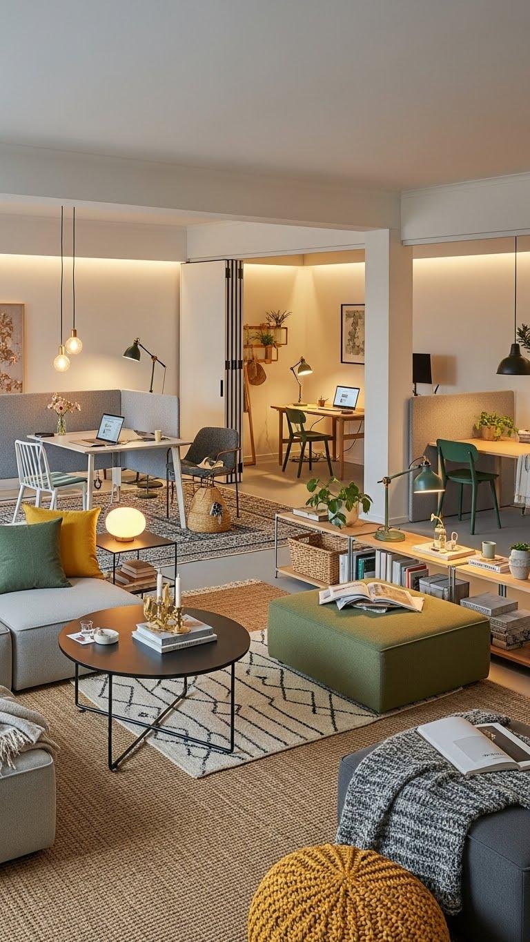 Because your home has to do more than look beautiful, design flexible zones that shift easily between work, rest, and play — think layered lighting, movable furniture, and defined textures that signal a change of use. You’ll combine modular seating, flexible partitions, rugs, and shelving to carve purpose without walls. Embrace adaptable surfaces and clear sightlines so each moment feels intentionally free and stylish.