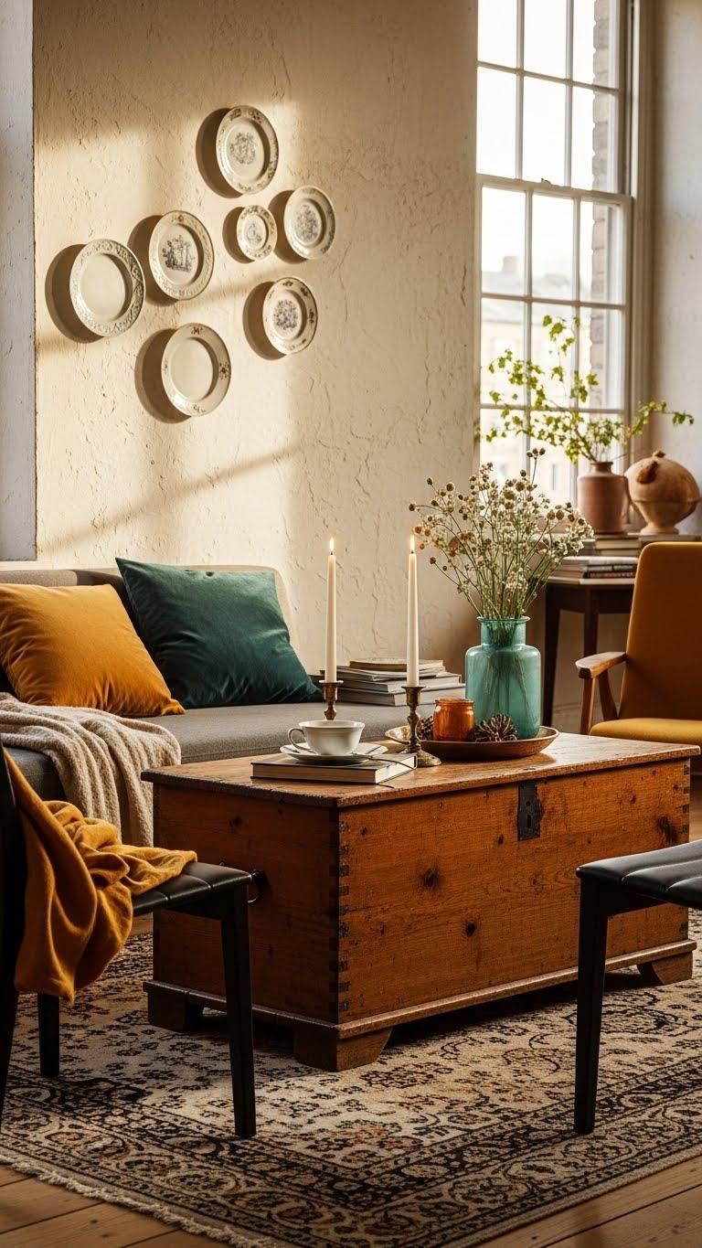 You’ll create rooms that feel intentionally collected, not matchy — think jewel-toned sofas against neutral walls, layered rugs, and mismatched lighting that still breathes cohesion. I’ll show how to mix velvet and weathered wood, blend global finds with mid-century lines, and arrange vignettes that tell a story. Keep going and you’ll learn practical ways to balance bold pattern, texture, and one-of-a-kind pieces for a confident, lived-in look.