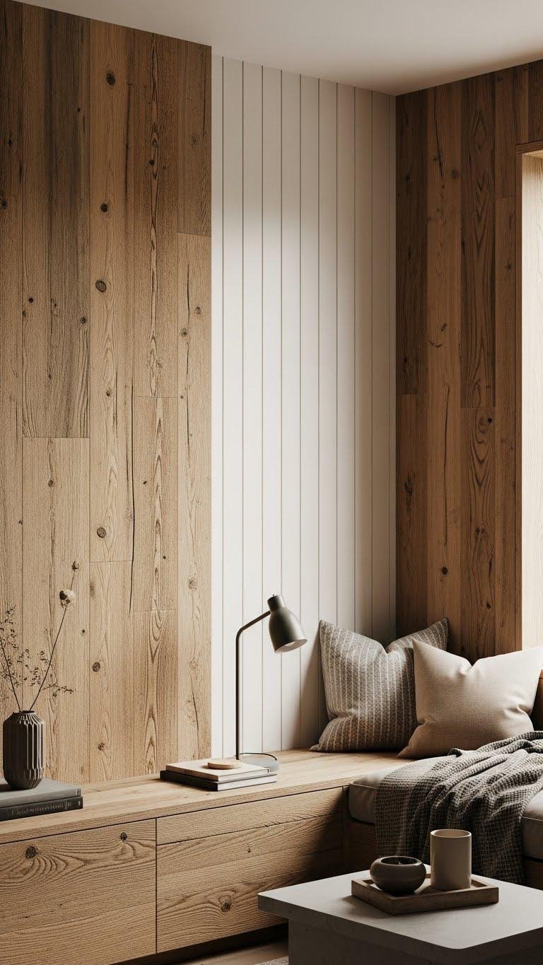 Wood paneling brings instant depth and warmth to a room, turning flat surfaces into tactile backdrops that feel both timeless and intentional.