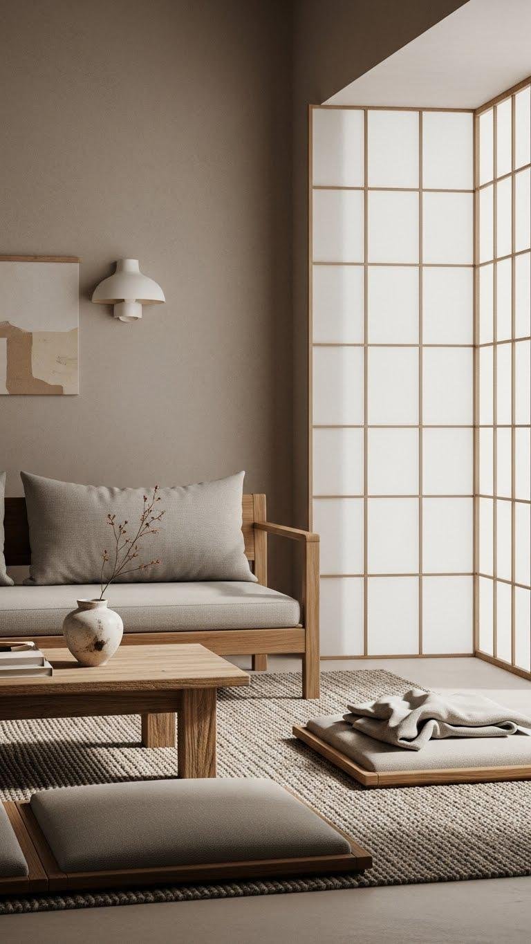 Lean into Japandi by blending Japanese restraint with Scandinavian warmth so your space feels both serene and inviting. You’ll embrace wabi sabi — valuing imperfection — with a muted palette, natural textures, and uncluttered sightlines.