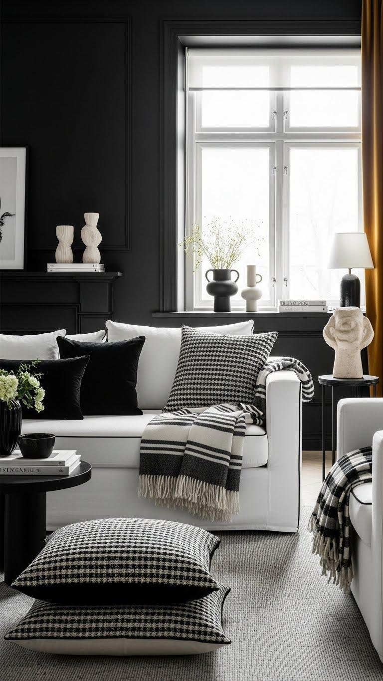 While a color-drenched room celebrates depth and drama, a black-and-white foundation gives you a timeless, adaptable canvas you can build on.