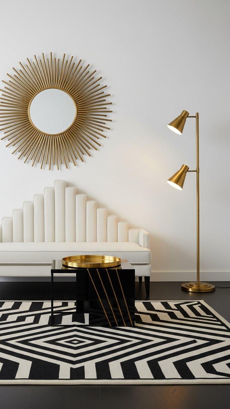 Because geometry was central to Art Deco’s glamour, introducing its bold lines and stepped forms will give your black-and-white foundation instant polish and period confidence.