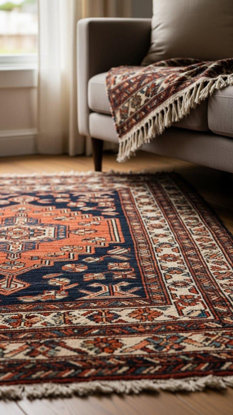 You’ll mix an antique runner with worn Persian or kilim pieces, creating layered textures that feel effortless. Choose muted palettes and natural fibers to let wood breathe, then reposition rugs for seasonal change—freeing your space while keeping it composed and personal.