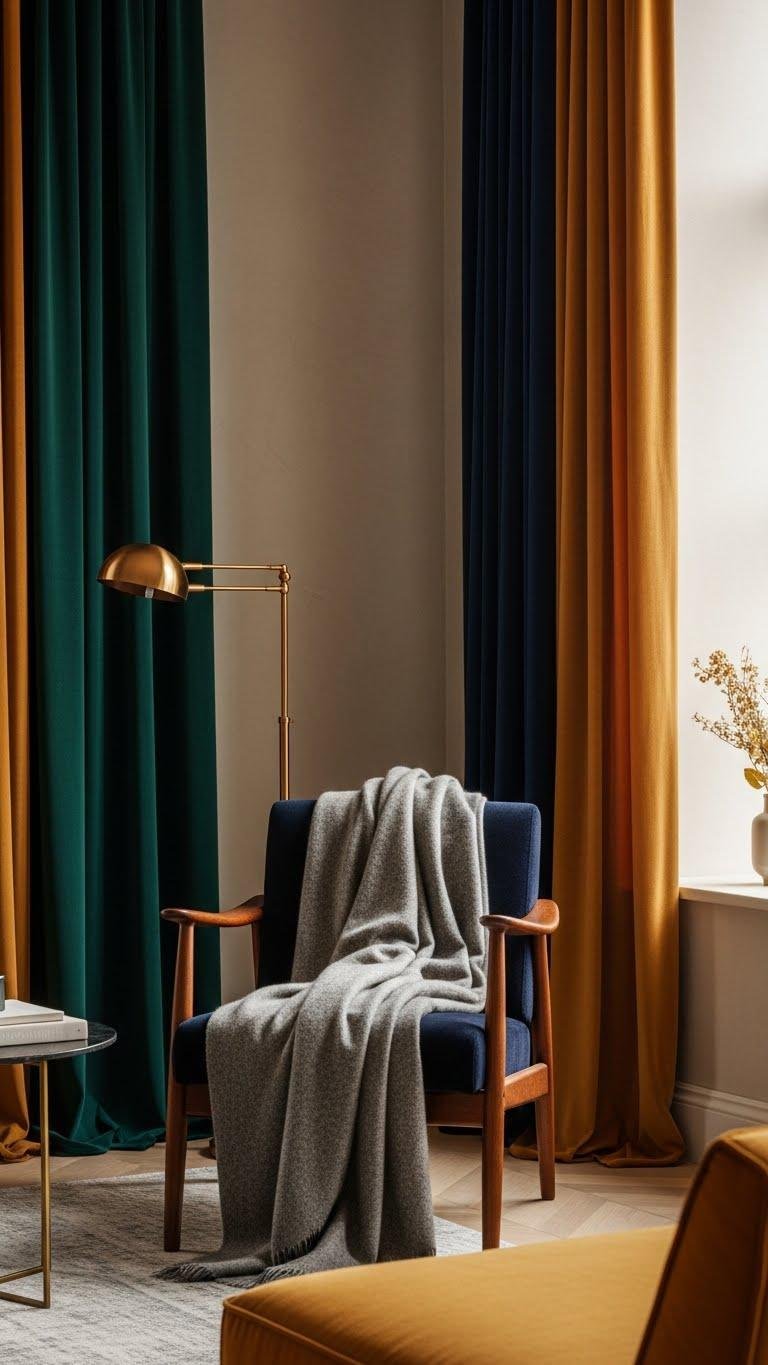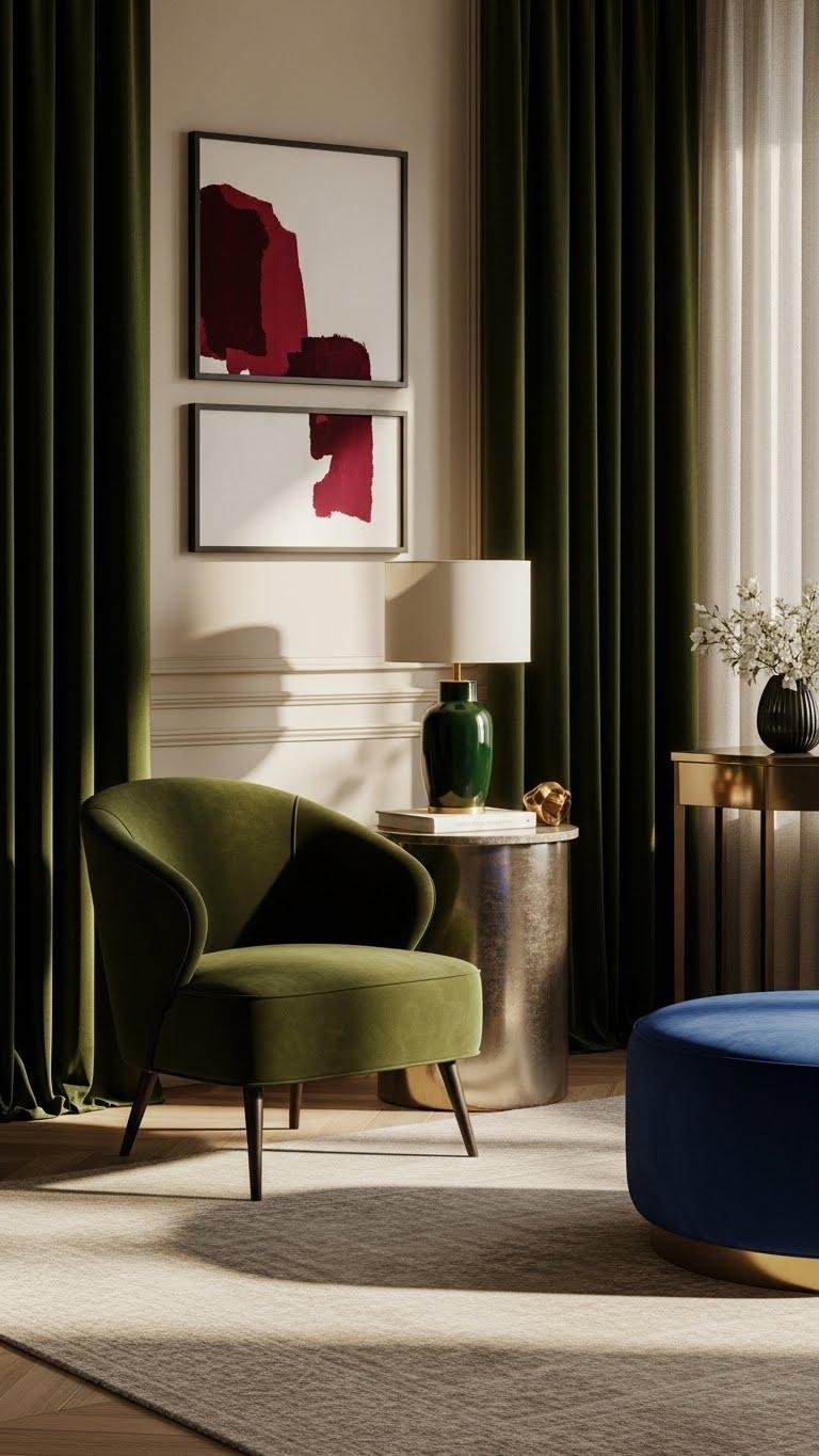 Pair sparing pops with velvet drapery for tactile luxury, metallic trims for polish, and open layouts that let you feel liberated while keeping the scheme intentional and effortlessly refined.