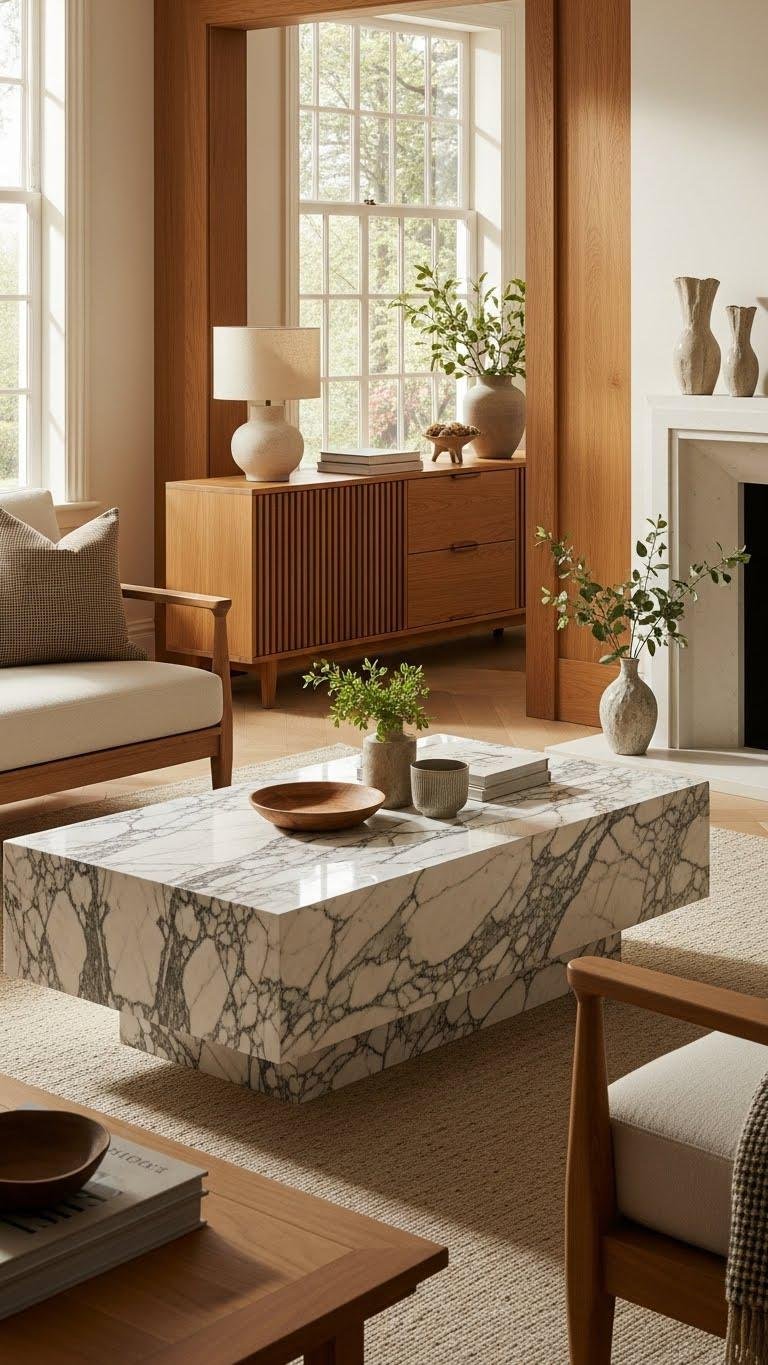 When you choose solid wood and marble finishes, you’re investing in materials that bring warmth, durability, and a timeless edge to an elegant living room.