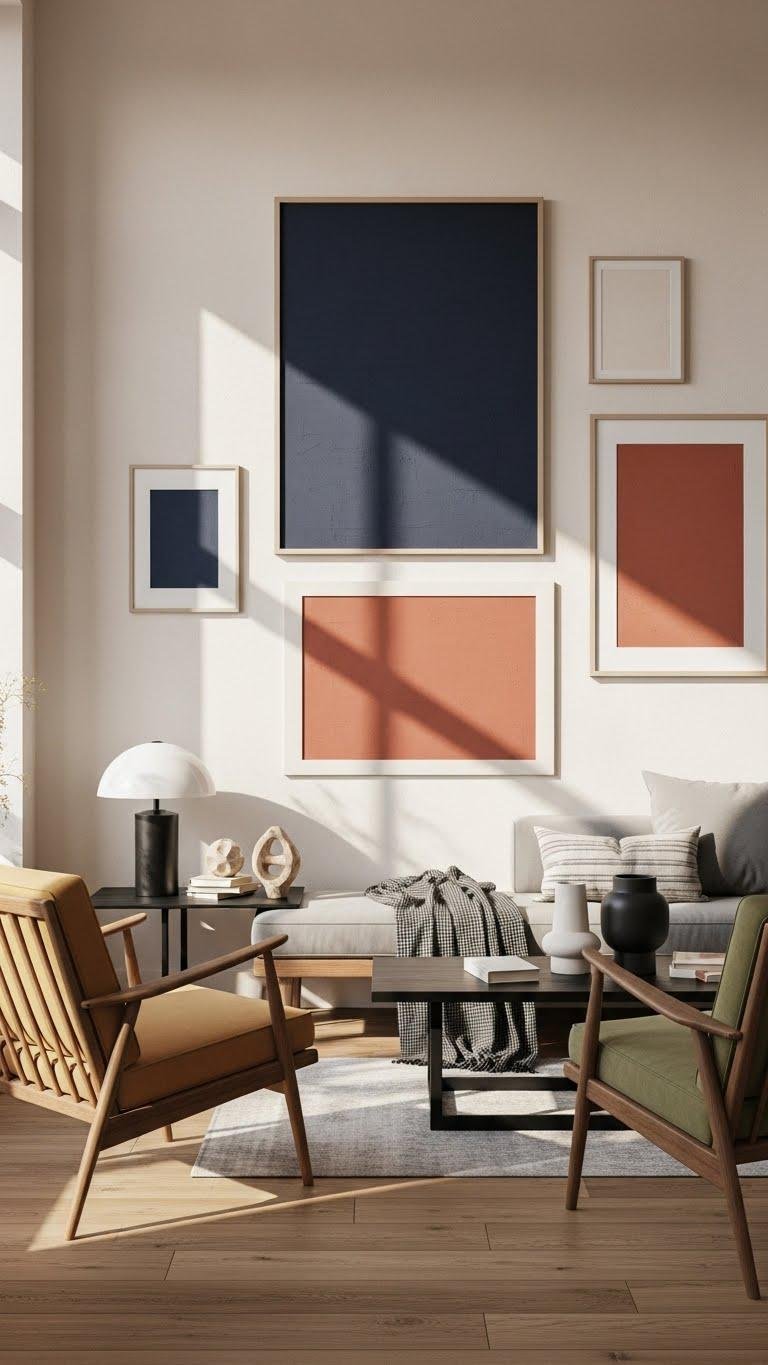 A bold focal point—whether a single oversized canvas or a deliberately arranged gallery wall—can instantly define your living room’s personality and scale, so choose pieces that speak to the room’s palette and proportions.