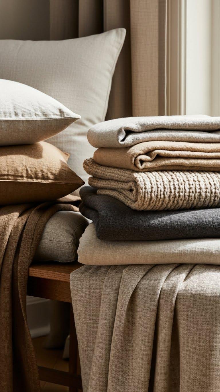 Choose fabrics that look and feel like an investment: sumptuous linen, heavyweight wool, silk blends and tightly woven cottons bring texture, drape and longevity to cushions, drapery and upholstery. You’ll favor linen blends for airy resilience, pair upholstery with silk backing for subtle sheen, and choose durable weaves that move freely with your life. Invest in tactile quality for effortless, liberated elegance.
