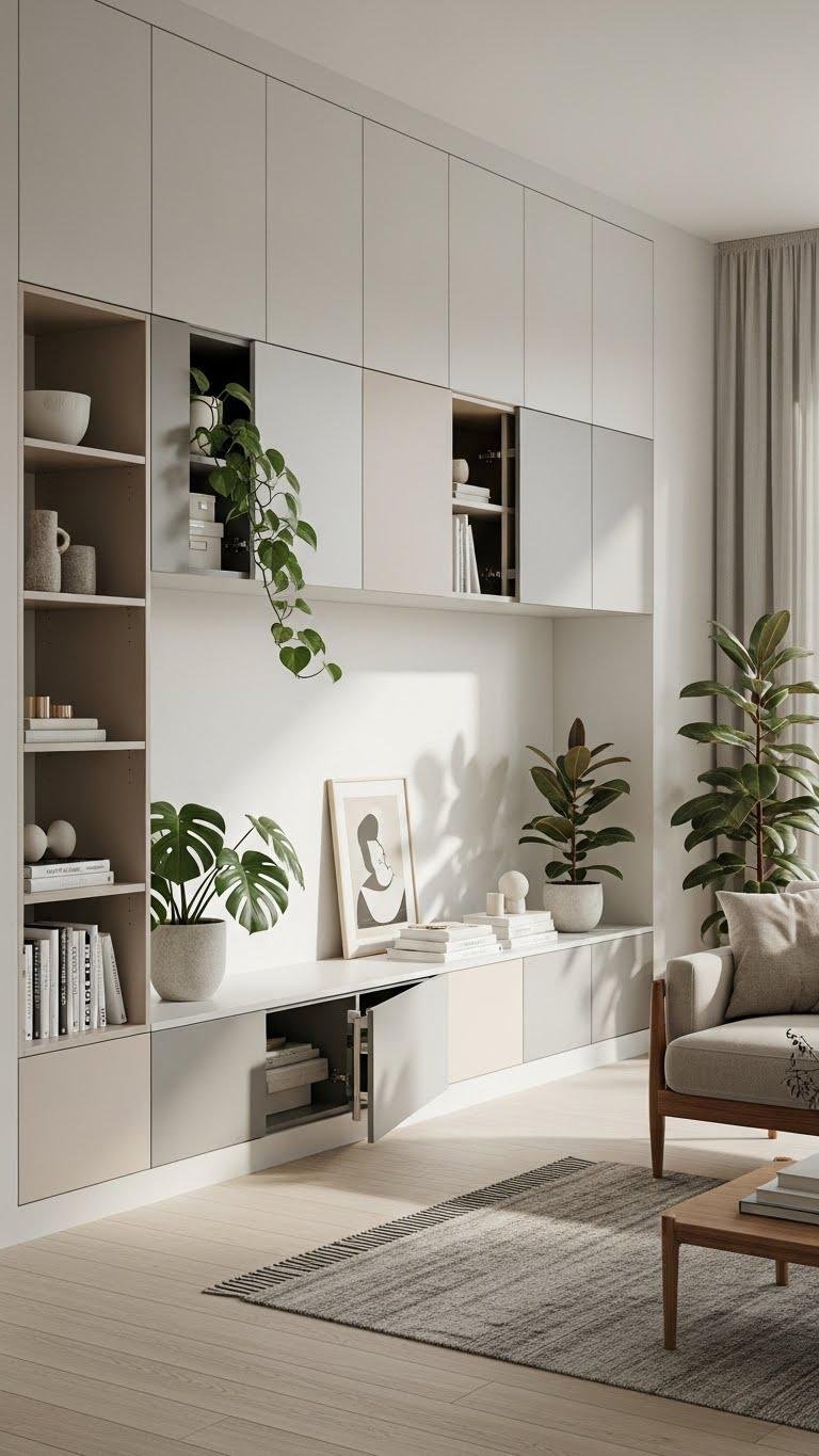 Choose muted finishes, concealed hardware, and flexible compartments so your living room feels open, curated, and effortlessly liberated.