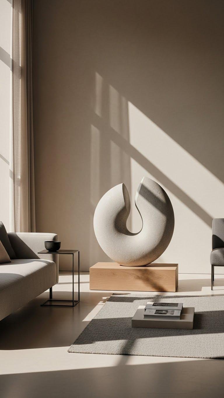 Although a single sculptural piece can anchor the room, you’ll get the most sophisticated results by pairing it with pared-back furnishings that let form speak without competing for attention.