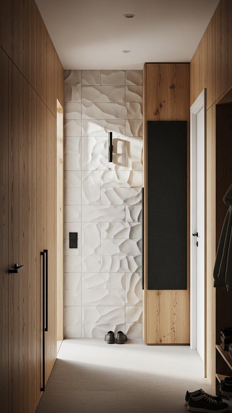 You’ll choose warm planks or sculpted textured ceramics for tactile depth, or mix in discreet acoustic panels to tame hallway echo.