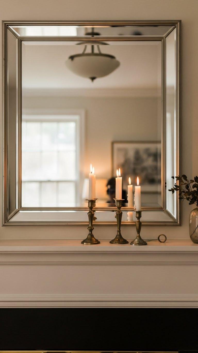 When you anchor your mantel with a classic mirror, you instantly add depth and a focal point that elevates the whole room; pair it with a curated set of candles to balance light and reflection. You’ll choose a beveled mirror for crisp edges, flank it with antique candlesticks for character, and keep styling minimal so the arrangement feels liberated, intentional, and effortlessly chic.