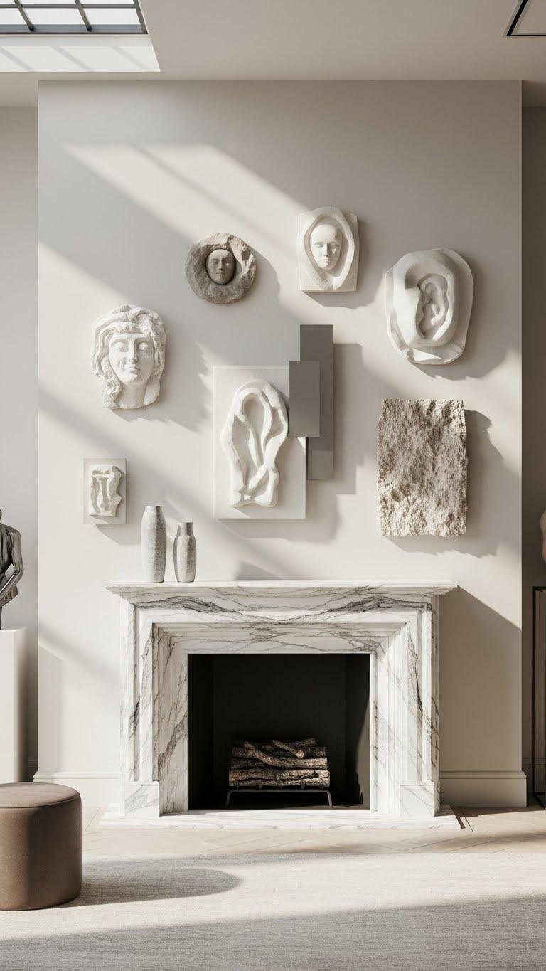 With a marble mantel as your anchor, coordinate wall sculptures to echo its veining and scale for a cohesive, gallery-like look. You’ll lean into veined elegance and sculpted symmetry, choosing pieces that mirror marble’s rhythm without matching it exactly. Arrange varied depths and finishes to create movement, keep negative space intentional, and let the mantel breathe so the composition feels liberated and refined.