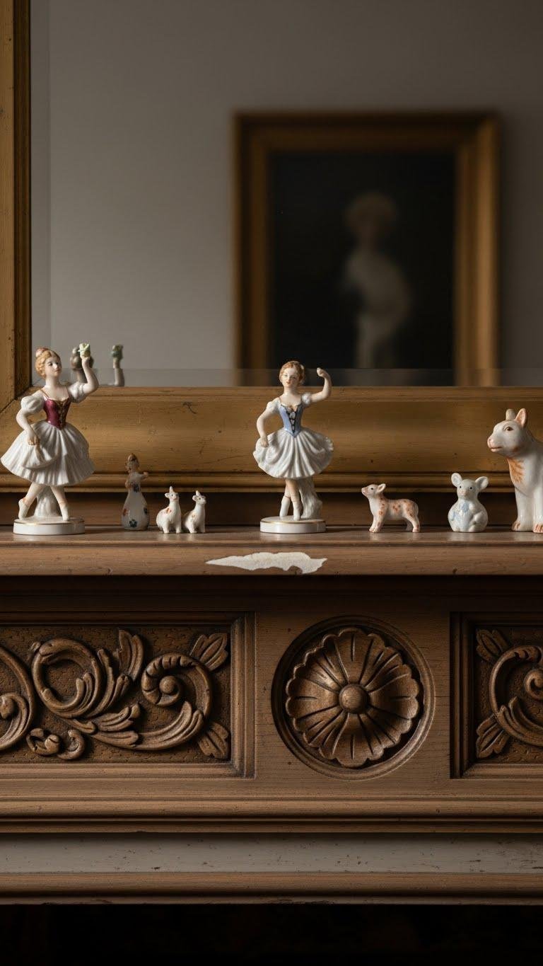 Whimsical Sculptures on an Antique Mantel