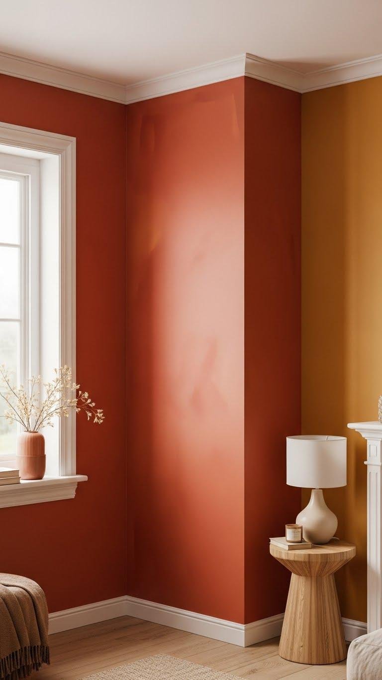 Pick a single wall and let it become the room’s focal point by repainting it in a warm, saturated hue like terracotta, mustard, or deep coral. You’ll balance a sunset gradient or layer moody jeweltones to create depth, painting carefully from trim to ceiling. Choose matte for intimacy or eggshell for light reflection, and let that single bold surface free the rest of your décor.