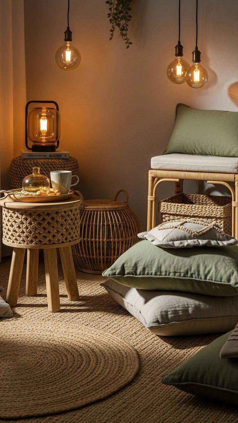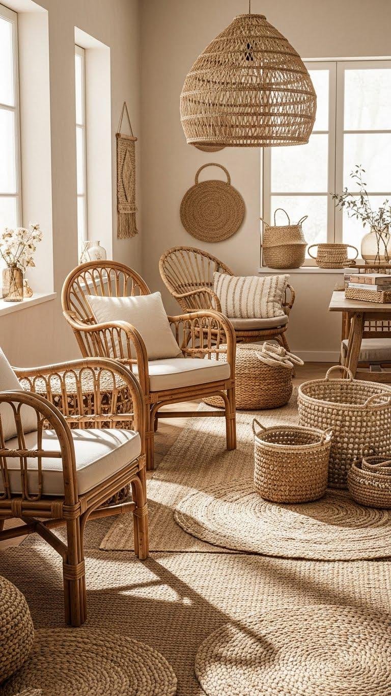 For a room that feels lived-in and layered, weave in natural materials—rattan, seagrass, jute, and hemp—so they read as intentional texture rather than afterthought.