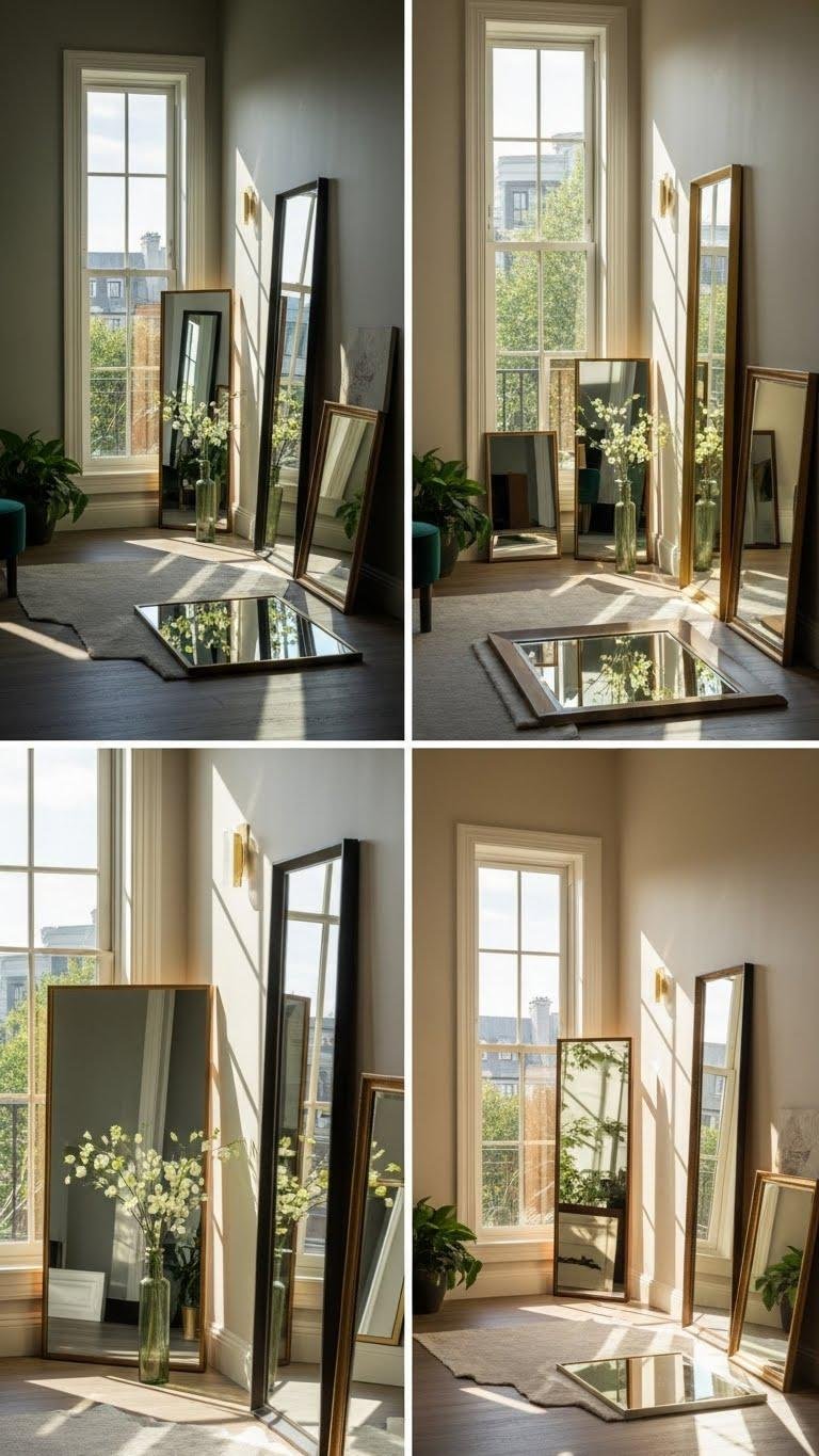 Choose anti glare placement, mix framed and beveled mirrors, and combine layered reflective surfaces for subtle drama.